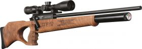 Fünfschüssiger Repetierer, prellschlagfrei durch Pressluftantrieb, Kal. 4,5mm/.177 (7.5/16/24 Joule) oder 5.5mm/.22 (16/24/40 Joule), hochwertiger Lochschaft aus Nussbaumholz, höhenverstellbare Schaftkappe, vielseitig verstellbares Abzugssystem, externe Sicherung, zum Patent angemeldete Magazinabdichtung, Druckbehälter mit integriertem Manometer, Lieferung im Kunststoffkoffer mit 2 Stk. 5-Schussmagazinen, Bedienungsanleitung, Werkzeug, Fülladapter. (Kal. 4.5mm/.177 mit STEYR Dosen Clip)