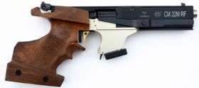 Die Morini Sportpistole CM22M RF ist eine überarbeitete Version der CM22M. Hierbei wurde die Visierlinie nochmals tiefer gelegt. Mit dem Alu-Griffstück wird das Gesamtgewicht der Waffe verringert, trotz ausgewogener Balance. Die Abzugsposition wurde ebenfalls den gewünschten Bedürfnissen angepasst. Dadurch ergibt sich eine nochmals verbesserte Handlage, die auch im Olympischen Schnellfeuerprogramm zum Vorteil wird. Der Griffwinkel lässt sich verstellen. Sehr einfache Handhabung. Auch die Reinigung der CM22M ist von jedem Schützen problemlos zu machen.